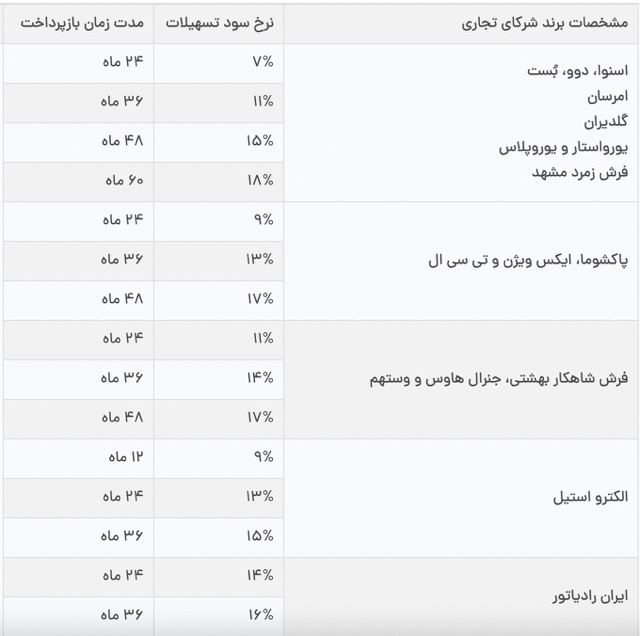 اقساط وام نیز بین ۱۲ تا ۶۰ ماه است.